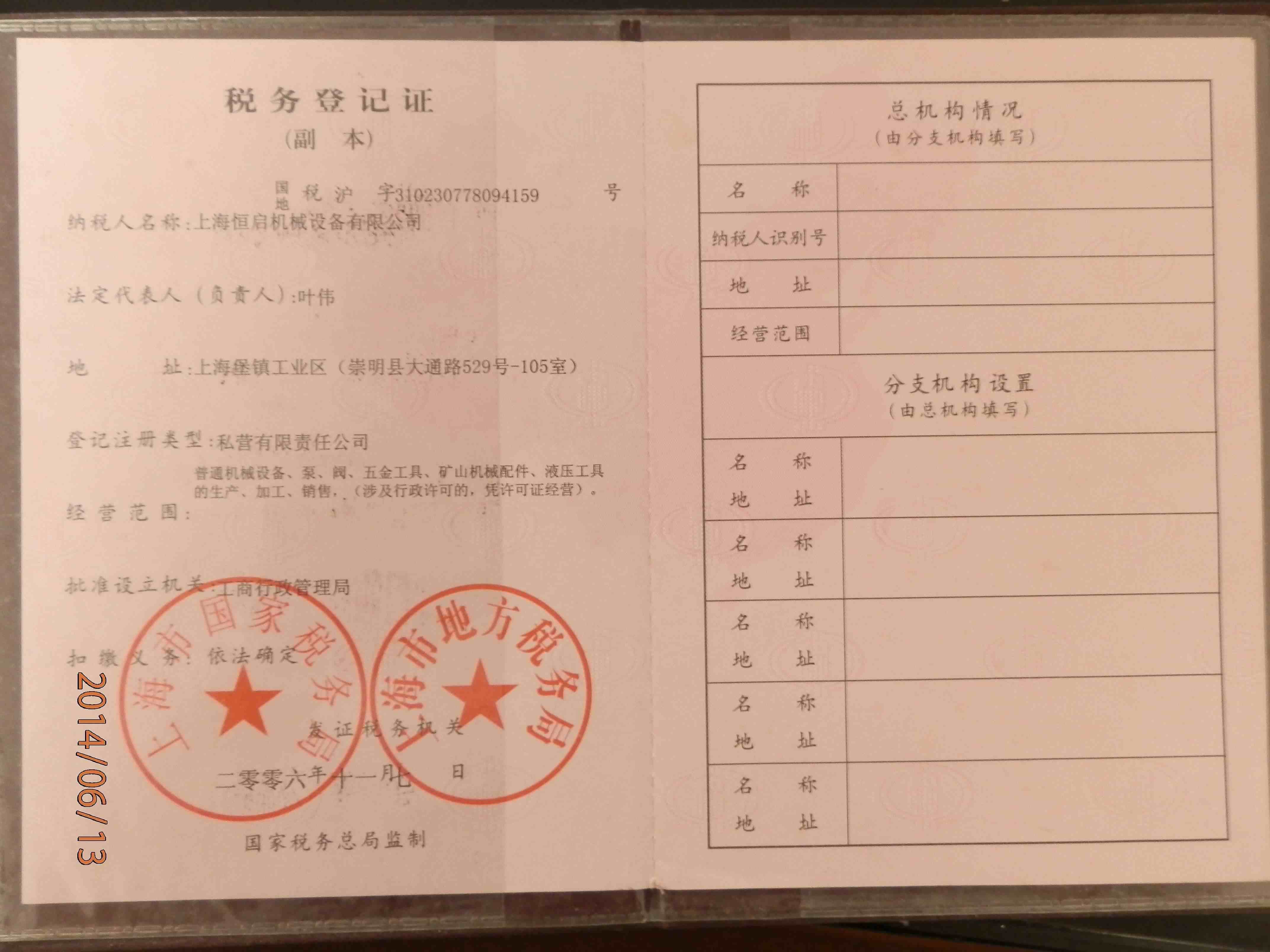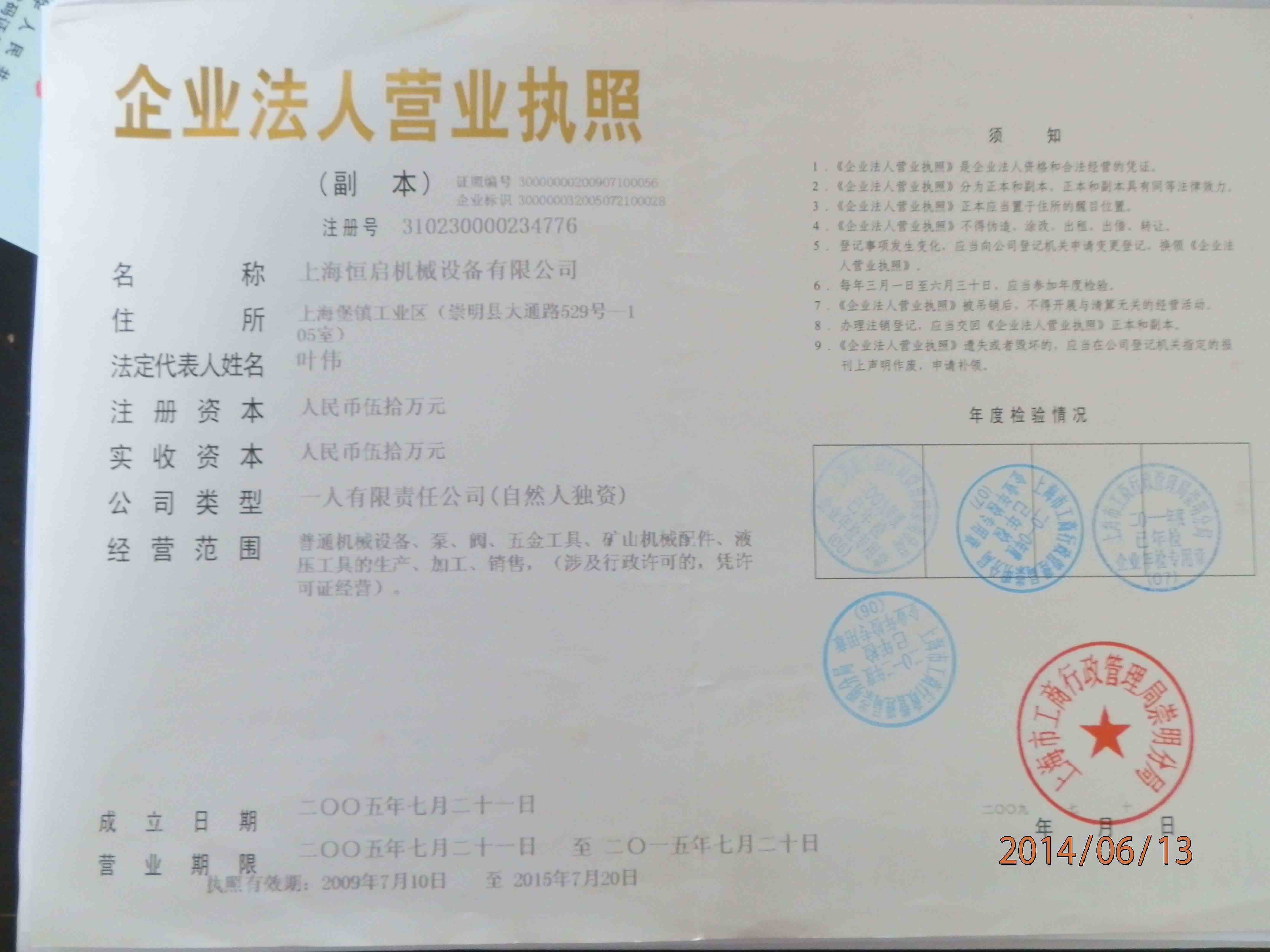 上海恒啟機械有限公司注冊成立于2000年,至今已有15年之久。期間不斷生產制造且經營供應手動試壓泵、電動打壓泵、電動試壓泵、彎管機(手動和電動)、液壓沖孔(手動和電動)、切斷、彎排機、超高壓油泵(手動和電動)以及礦山機、千斤頂、沖孔機、咬口機等,是一家中國大陸企業。